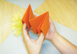 4. Agora, dobre as pontas da coluna para trás, para os lados contrários, unindo-as ao centro, formando a letra M.